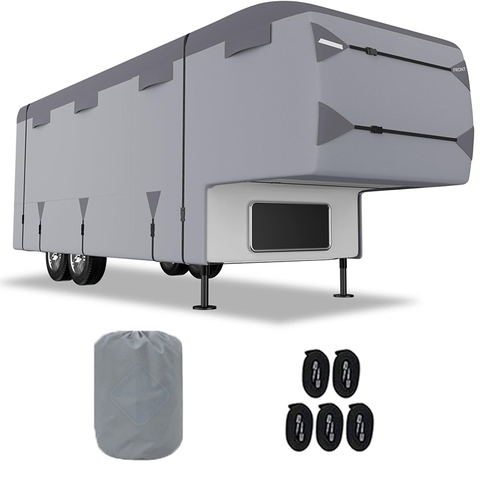工場でカスタマイズされた5輪RVカバー600D最も耐久性のある防水アンチUVトラベルトレーラー冬の雪用RVカバー